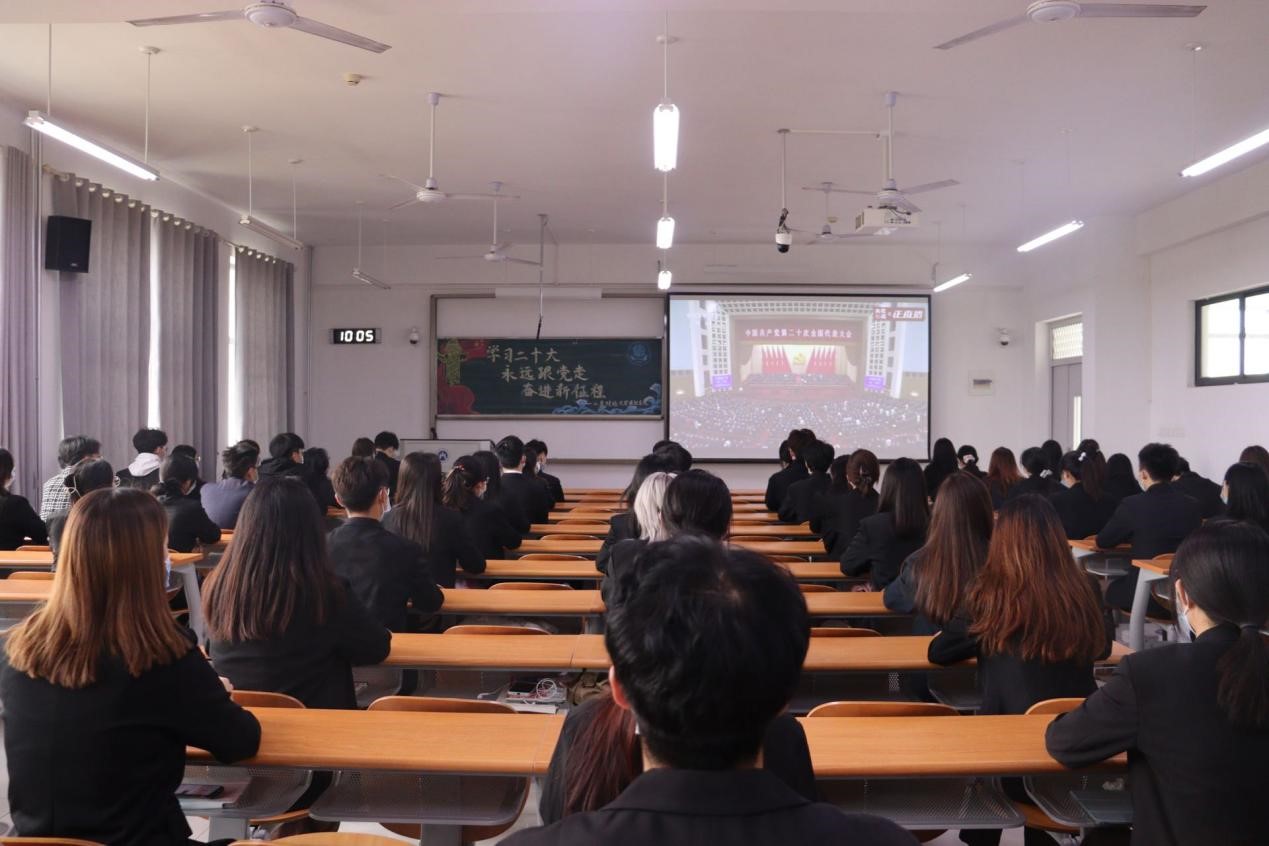 学院领导班子成员、教师代表、学生党员代表于舜耕校区办公楼1108会议室集中收看大会直播。学生干部、学生党员分别在圣井校区7号教学楼7214教室、7-201学院会议室集中收看开幕会。