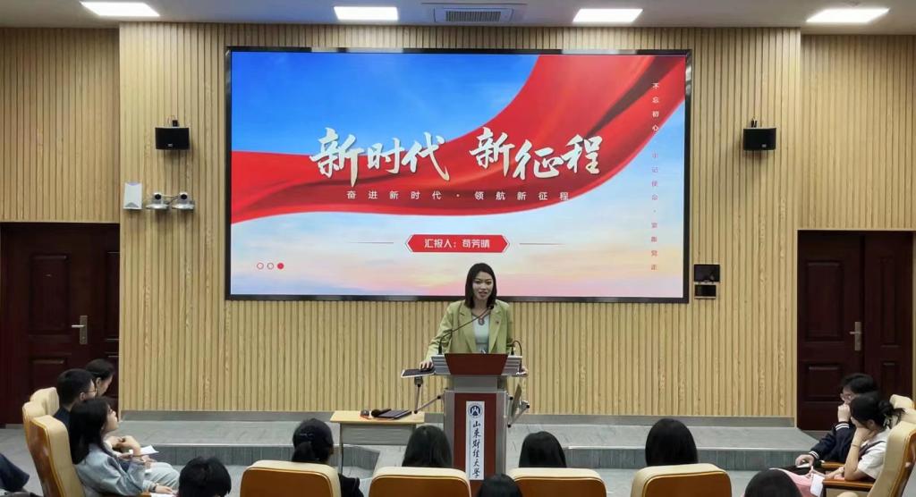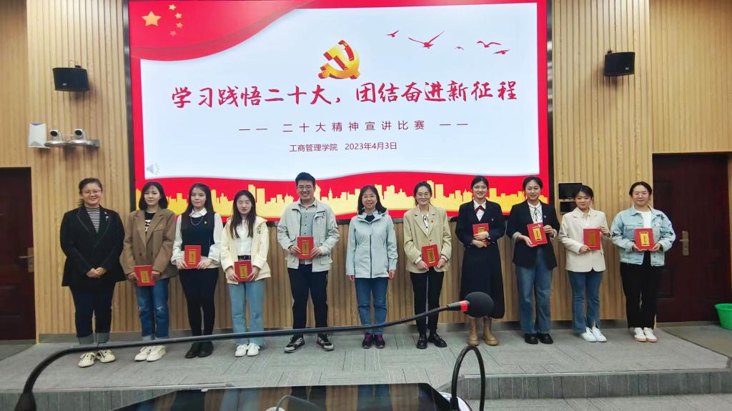4月3日下午,工商管理学院在逸夫楼103报告厅举办“学习践悟二十大,团结奋进新征程”研究生党的二十大精神宣讲比赛。学院党委书记赵世民、副书记彭艳红、研究生辅导员刘薇、学生党支部书记郭丽娟、赵萱及全体研究生参加。