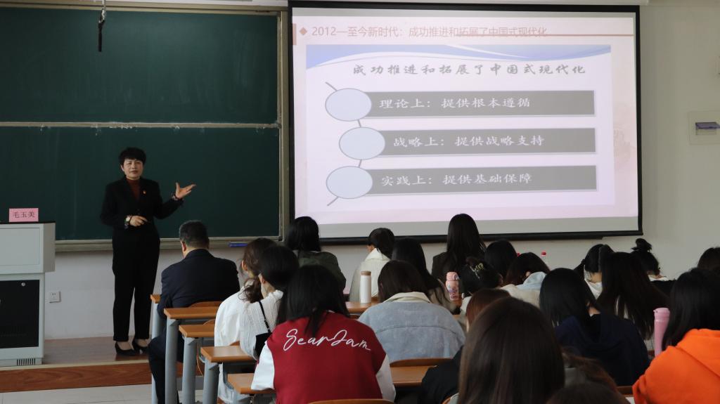 毛玉美教授从历史脉络、战略部署、中国特色、本质要求、重大原则五个方面系统地阐述了中国式现代化。毛教授结合中国近现代史发展脉络,系统梳理了中国式现代化的发展沿革;从国家战略角度出发,深度解析了中国式现代化的意义和内涵。同时,她指出,作为新时代青年学生,要勇于在风高浪急的新征程中承担历史责任、发扬斗争精神,在民族复兴征程中激扬青春。