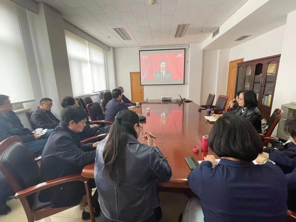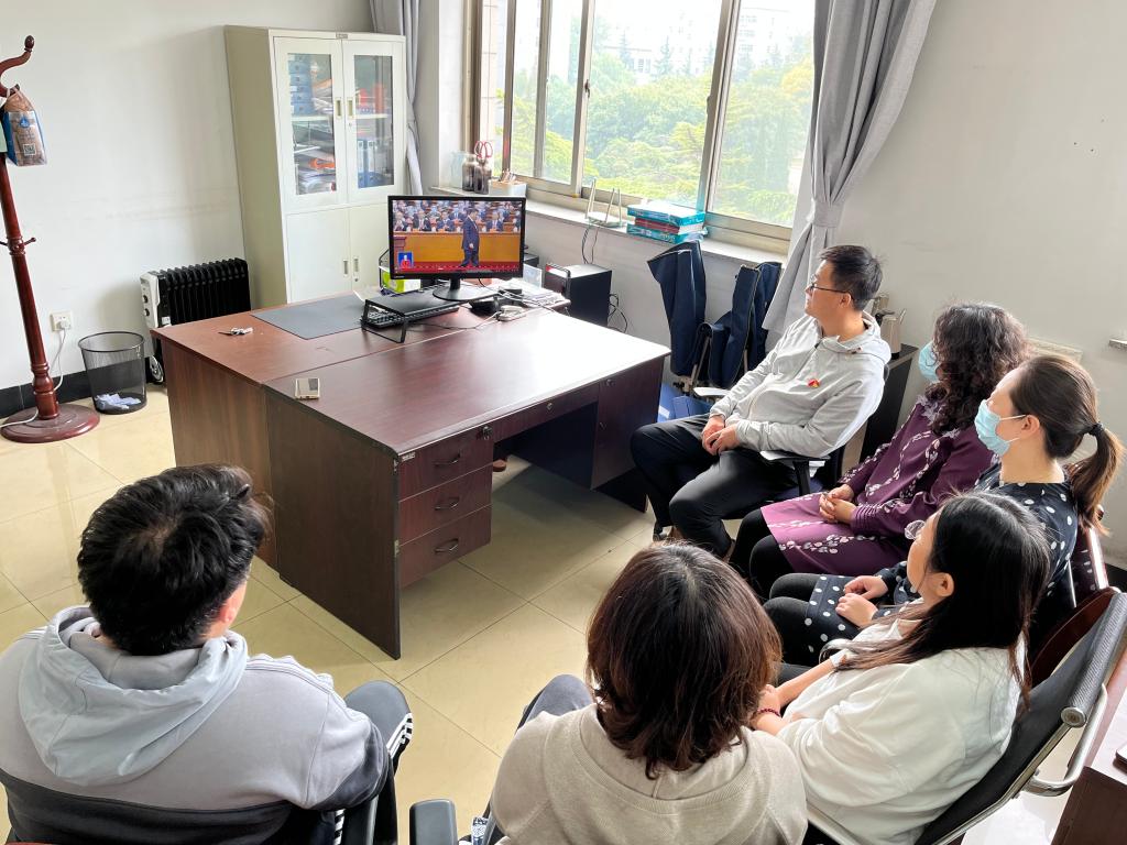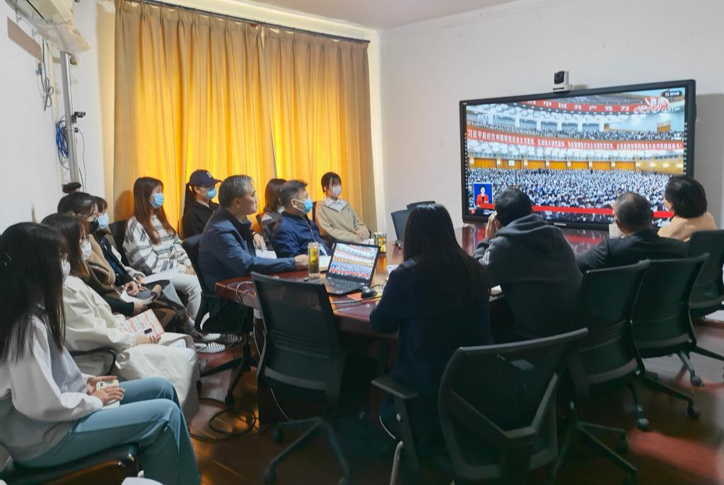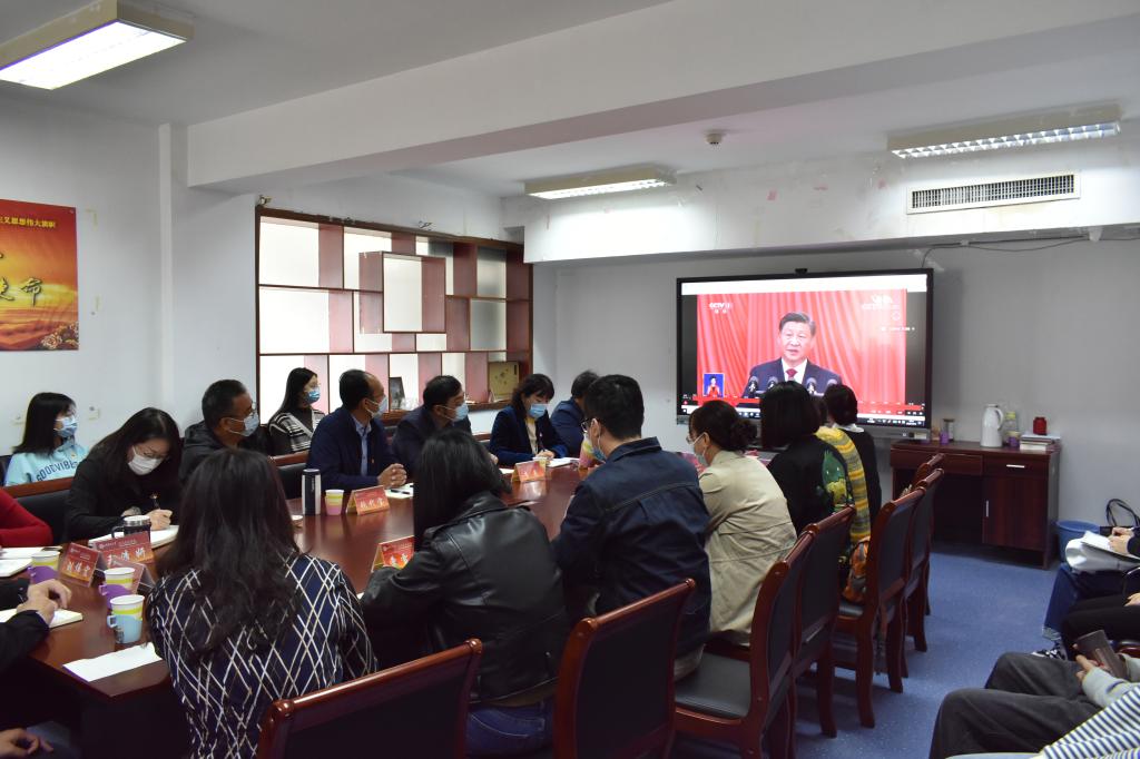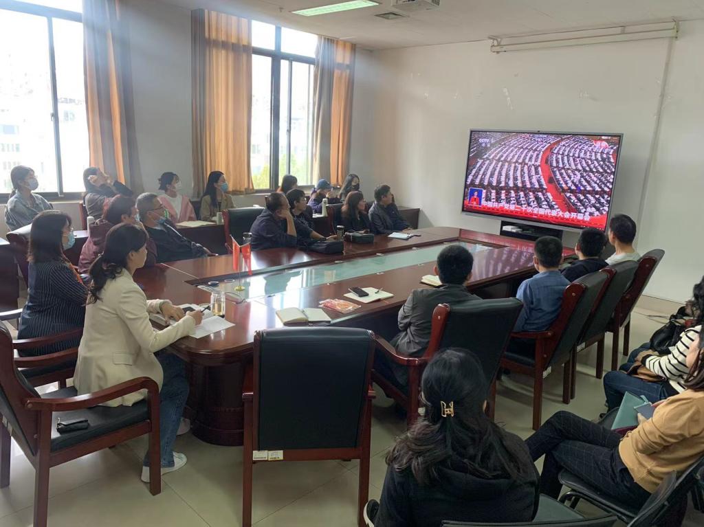 各学院、其他职能部门、群团组织和教辅单位等组织干部职工在各会议室集中收听收看开幕会盛况。