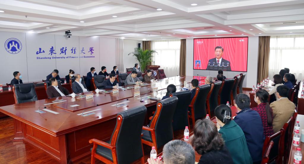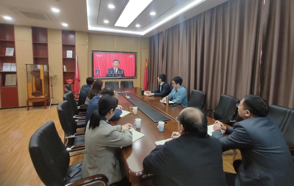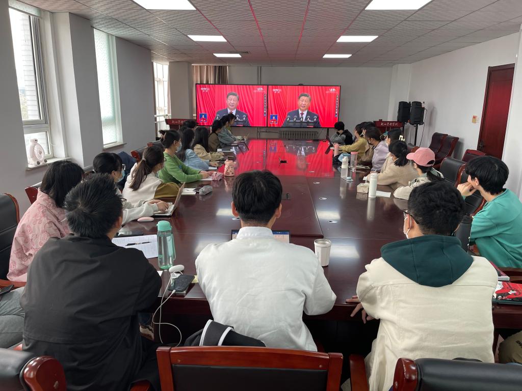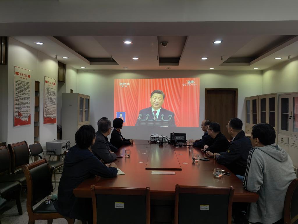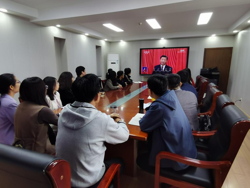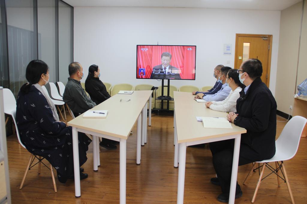 各学院、其他职能部门、群团组织和教辅单位等组织干部职工在各会议室集中收听收看开幕会盛况。